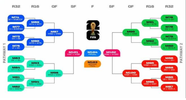 这四支球队通过“反向路径”分组实现规避,采用颜色区分机制。西班牙被分至一个半区,阿根廷在另一侧;法国进入可能与西班牙或阿根廷在半决赛交锋的半区,英格兰则进入到另一个半区。不过这一安排的前提是四支球队均以小组第一晋级。