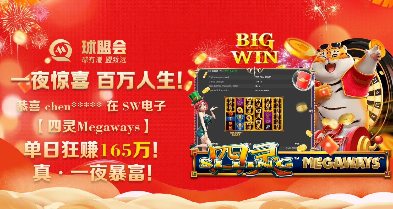 恭喜新会员chen****在SW电子【四灵Megaways】单日狂赚165万!!