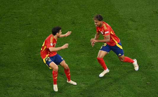 北京时间7月1日凌晨3点,2024欧洲杯1/8决赛,西班牙与格鲁吉亚在科隆展开争夺。上半场第18分钟,西班牙中卫勒诺尔芒自摆乌龙,格鲁吉亚1-0领先。第38分钟,罗德里抽射扳平,两队半场1-1。下半场亚马尔助攻法比安-鲁伊斯破门西班牙2-1反超比分。尼科-威廉姆斯和奥尔莫的进球最后帮助西班牙把比分锁定为4-1。西班牙大胜晋级,将在1/4决赛踢东道主德国。